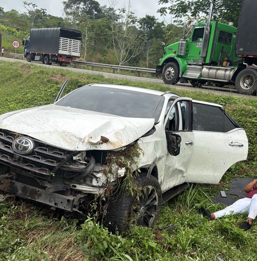 El accidente de Sebastián Ayala se presentó en Puerto Boyacá cuando un bus los impactó, sacando a su camioneta Toyota de la vía y ocasionando que cayeran a un caño. Las 5 personas que viajaban allí sufrieron lesiones que no complican su vida, pero el carro quedó en pérdida total.