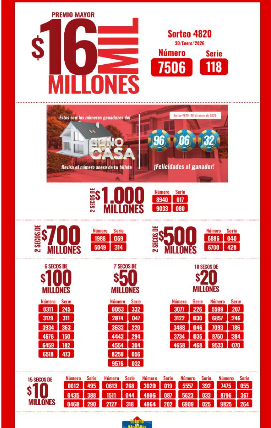 Este viernes “la de Medellín” sorteó un gran premio mayor de diez y seis mil millones de pesos ($ 16.000.000.000) y más de 30 premios secos.