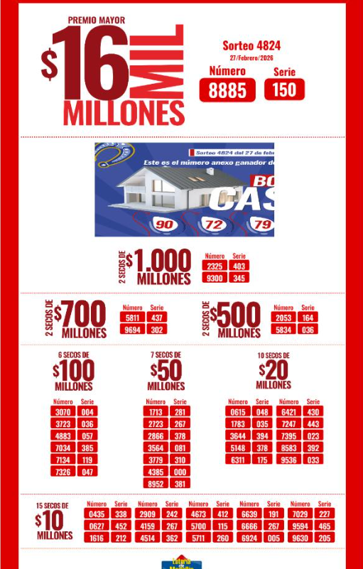 Y OJO el resultado de las Loterías para que salte de la felicidad al saber que se puede ganar más de 26 mil millones de pesos, solo sumando sus premios MAYORES. Y cerca de 50 mil millones de pesos sumando todos los premios secos y las aproximaciones.