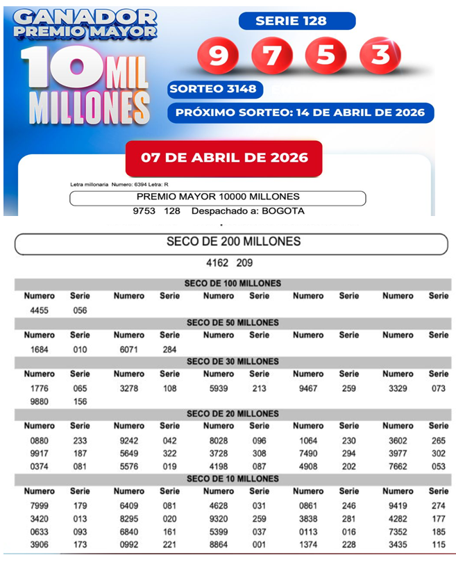 Como es habitual, te traemos el resultado de las Loterías de la Cruz Roja y la del Huila, incluyendo sus premios mayores y los premios secos multimillonarios.