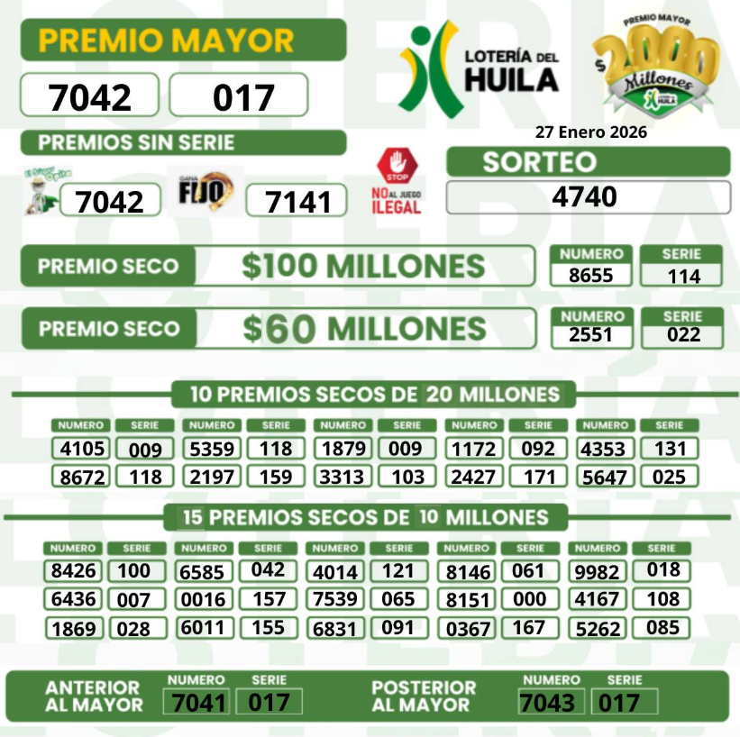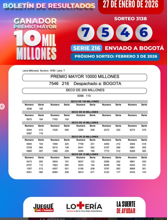 Si la pregunta que tiene este miércoles es ¿Cuál es el resultado de las Loterías de la Cruz Roja y la del Huila en ENERO 27 de 2026?, La respuesta se la tenemos en www.rutanoticias.co, porque queremos que sea feliz.