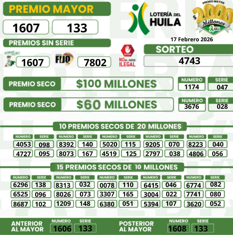 ¿Quieres saber cuál es el resultado de las Loterías de la Cruz Roja y la del Huila del martes 17 de febrero de 2026? La respuesta la encuentras en www.rutanoticias.co , porque queremos que sea feliz.