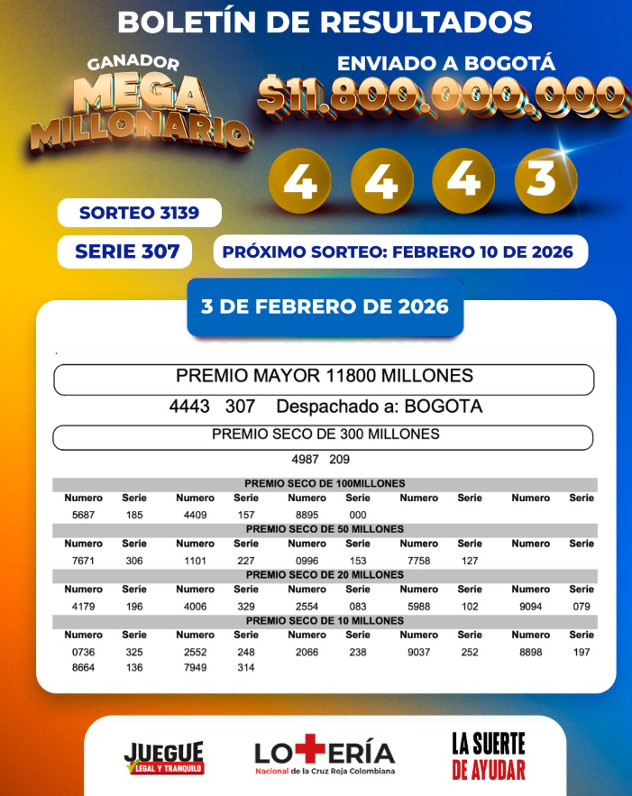 Si la pregunta que tiene este miércoles es ¿Cuál es el resultado de las Loterías de la Cruz Roja y la del Huila en FEBRERO 3 de 2026?, La respuesta se la tenemos en www.rutanoticias.co, porque queremos que sea feliz.