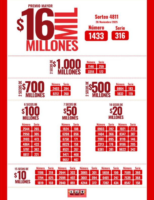 Este viernes 28 de NOVIEMBRE de 2025, “la de Medellín” sorteó un GRAN premio mayor de diez y seis mil millones de pesos ($ 16.000.000.000) y más de 30 premios secos. Además, se sorteó un bono de 500 mil pesos y es ganador quien compró el billete completo y este tenga las figuras Etiqueta, Datáfono y Globo: