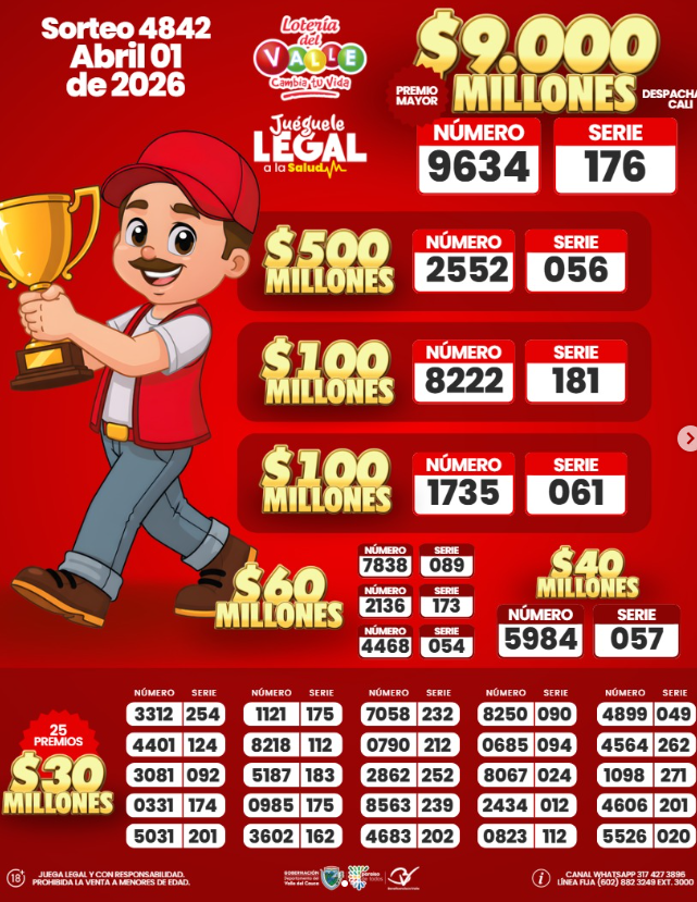 Revise…revise muy bien estos resultados de la Lotería del Valle y ADEMÁS el premio mayor, que fue vendido en CALI: