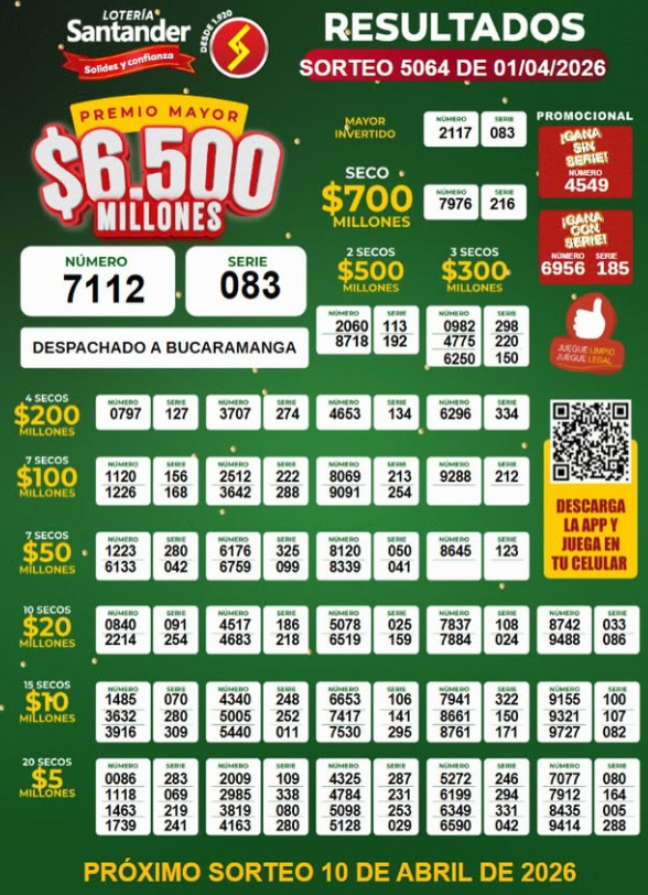 No nos va a creer, pero los resultados del Baloto, la Lotería de Manizales, la del Valle, la del Meta y la de Santander suman cerca de 50 mil millones de pesos solo en premios mayores. ¡Es un verdadero festival de sorteos millonarios! Como quien dice: año nuevo, ¡plata nueva!