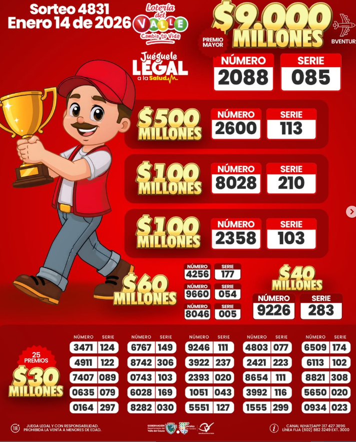 Revise…revise muy bien estos resultados de la Lotería del Valle: