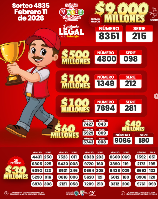 Revise…revise muy bien estos resultados de la Lotería del Valle y el premio mayor, que fue vendido en BOGOTA: