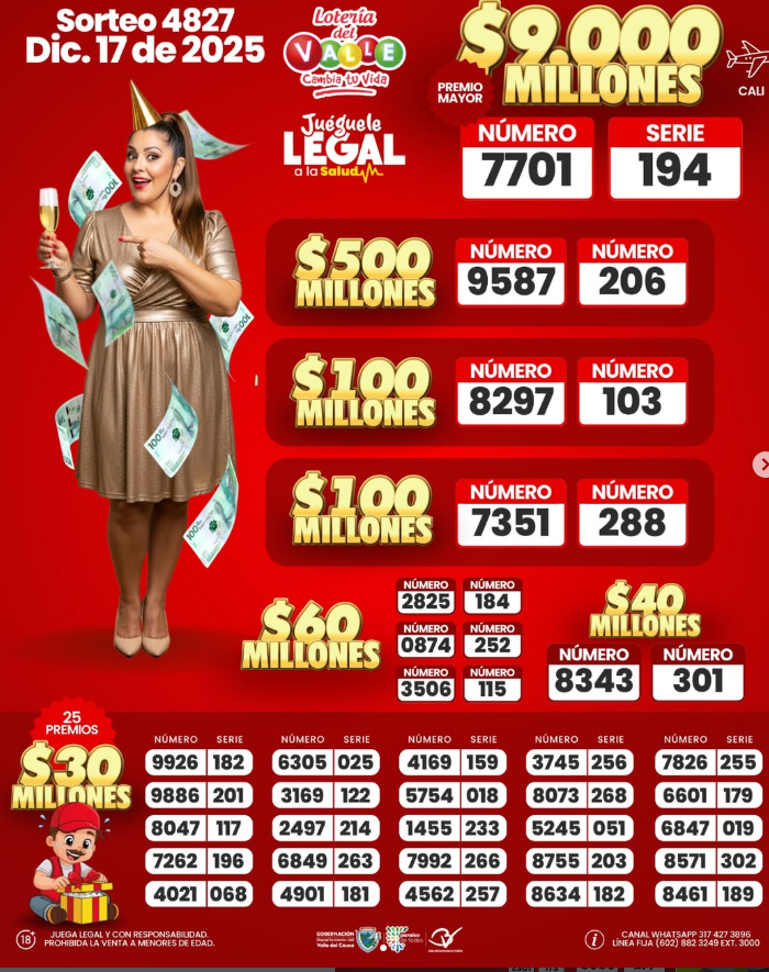 Revise…revise muy bien estos resultados de este miércoles 17 de DICIEMBRE del año 2025 de la Lotería del Valle: