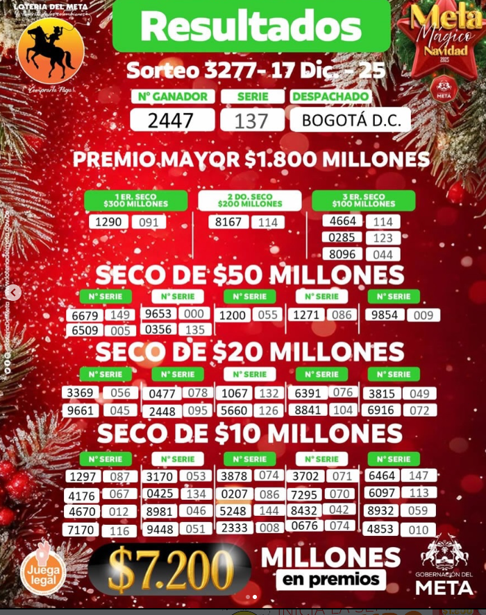 Además, ¿resultado del Baloto y la Lotería de Manizales, la del Valle y la Lotería del Meta (cuyo premio mayor cayó en MEDELLIN) Lo que da más de 31 mil millones de pesos solo si suma los tres premios mayores sorteados y el Baloto…más los premios secos multimillonarios…