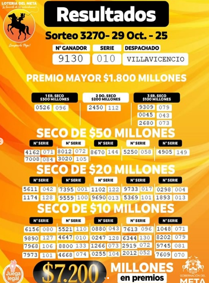 Además, ¿resultado del Baloto y la Lotería de Manizales (cuyo premio MAYOR cayó en BOGOTA), la del Valle y la Lotería del Meta (cuyo premio mayor cayó en MEDELLIN? Lo que da más de 31 mil millones de pesos solo si suma los tres premios mayores sorteados y el Baloto…más los premios secos multimillonarios…