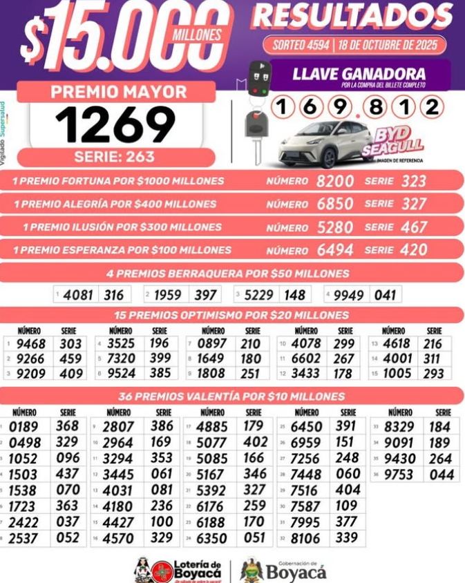 ¿Cuál es el resultado de la Lotería de Boyacá?