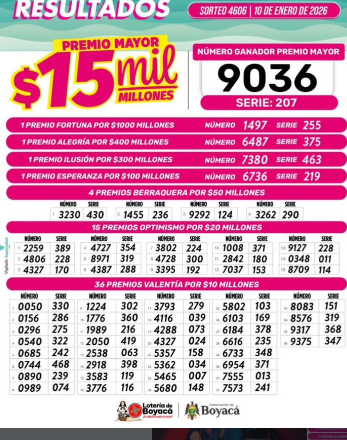 ¿Cuál es el resultado de la Lotería de Boyacá?