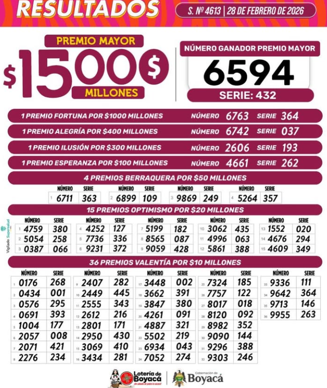 ¿Cuál es el resultado de la Lotería de Boyacá?