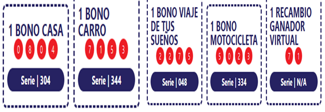 Y todos estos sorteos porque siempre queremos que mejore su vida. Pero recuerde que estos premios, cuando pasan de 2.390.000 (dos millones trescientos noventa mil pesos) tienen un 37 por ciento de descuento, sumando la retención en la fuente y los impuestos por gananciales ocasionales.