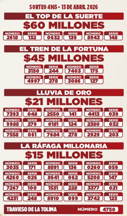 Resultados de las Loterías de Cundinamarca y Tolima: ¡Más de $13.500 millones en premios este lunes 6 de ABRIL! Para los apostadores en Colombia.